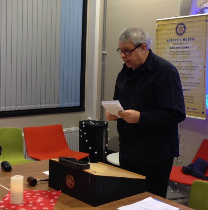Julebord 1. Desember. orientering fra Rolf. Presidenten fikk i oppdrag å sende invitasjon til enkene av Rotary medlemmer. |